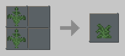 Crafting recipes are usually added through datapacks, but I listed them here for your convenience. They might not show up properly in your recipe book in the game.